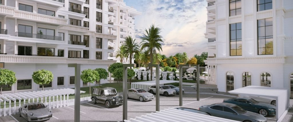 للبيع شقة في انطاليا الانيا بالتقسيط داخل مجمع سكني بطلالة جميلة