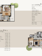 Daire tipleri: 2+1 – 3+1 – 3+2 – 5+2 (dubleks)